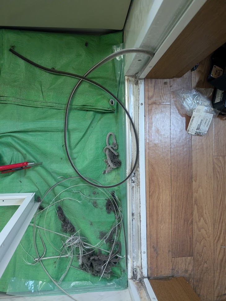 ドア本体を外し、部品やビート・モヘア等を撤去します