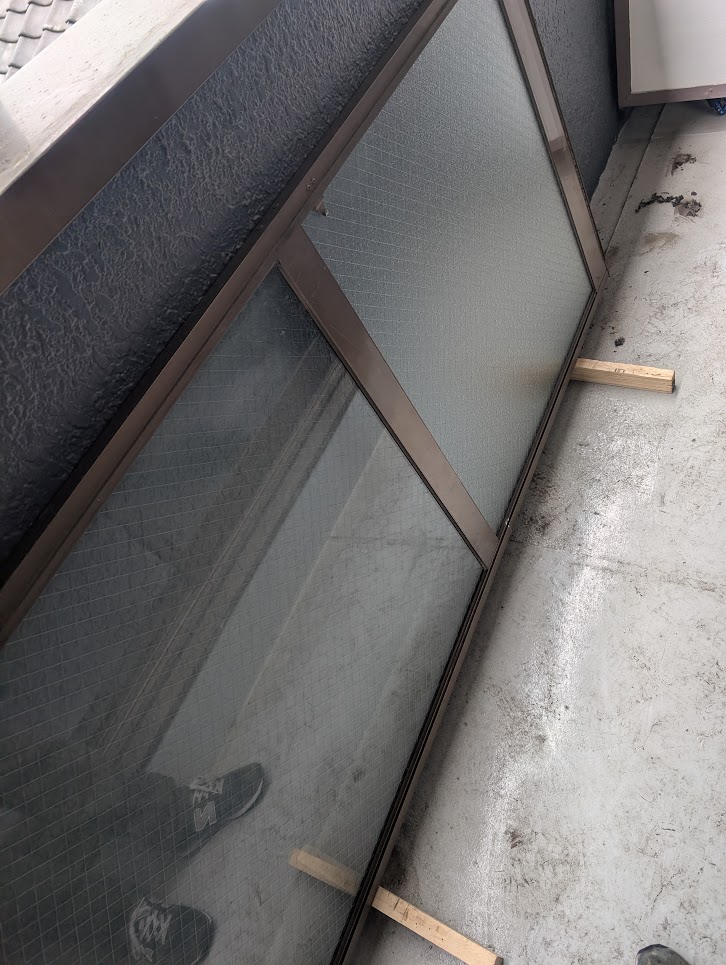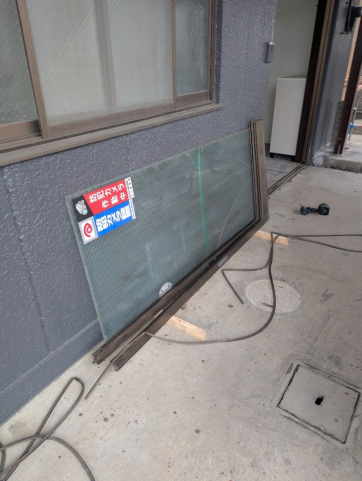 川口市江戸 改修現場の型ワイヤーガラス交換を行いました