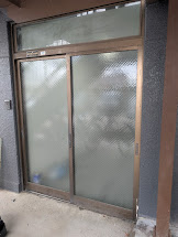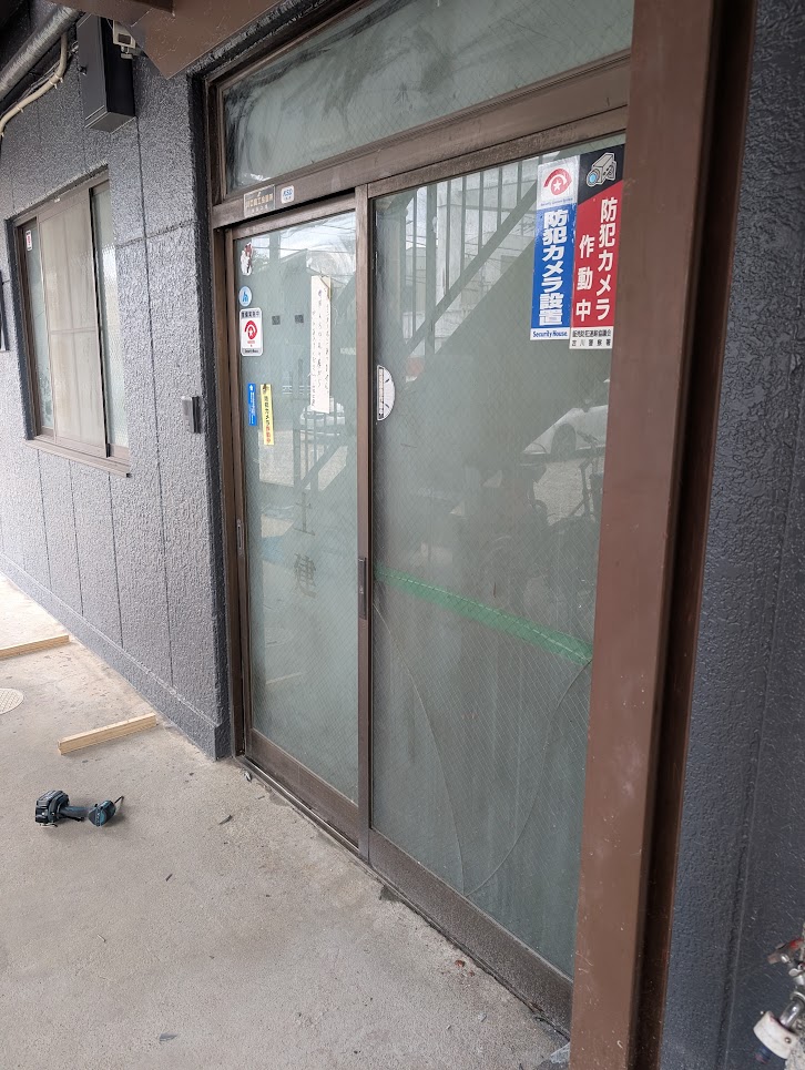 先ずは、店舗入口サッシのガラス交換です