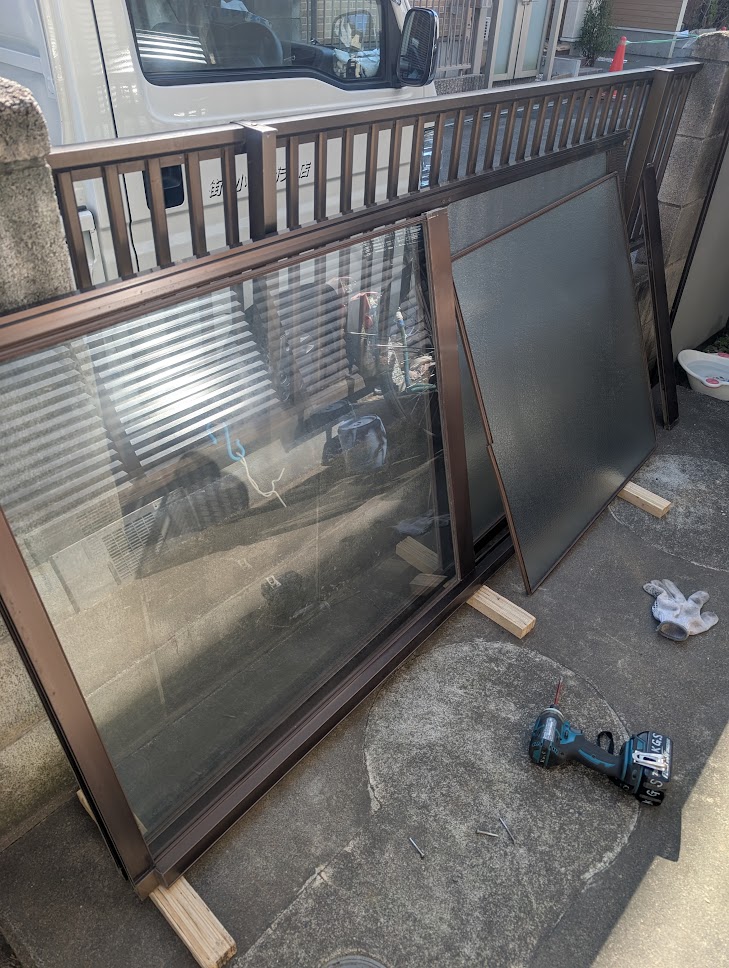 下段の4ミリ型ガラスを、5ミリ透明ガラスに交換依頼です
