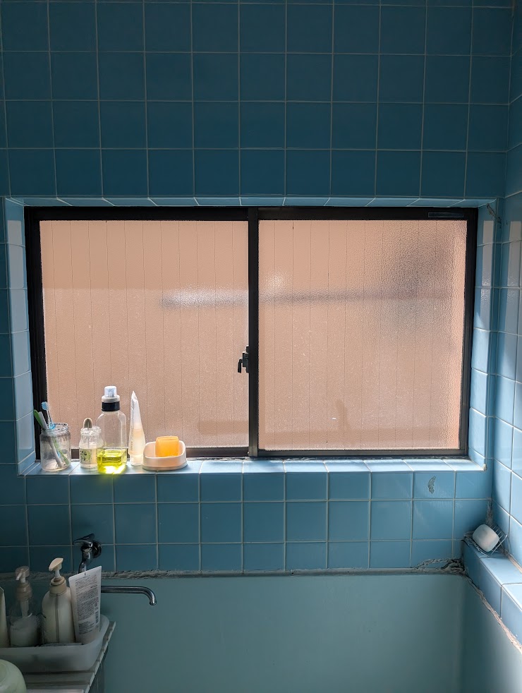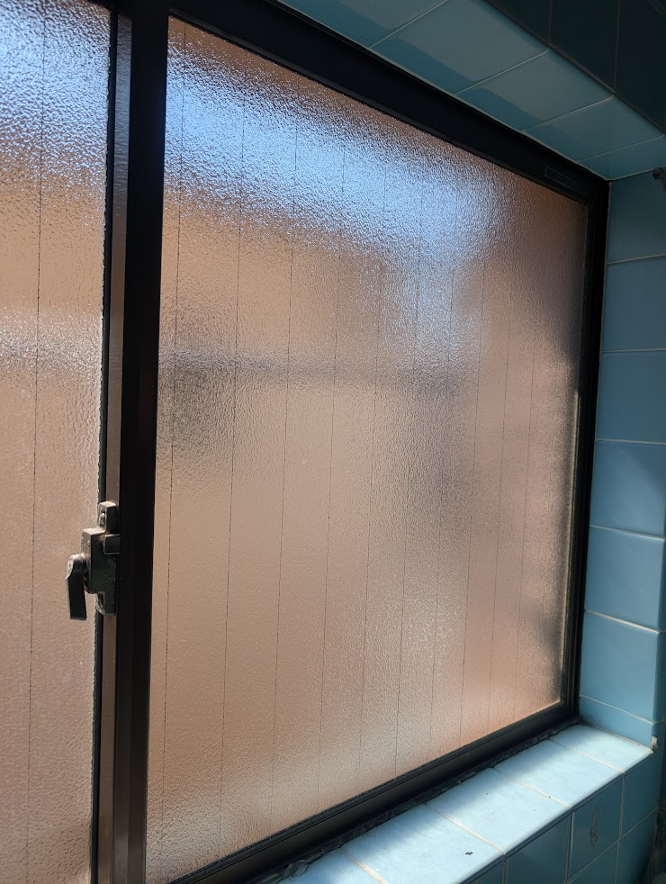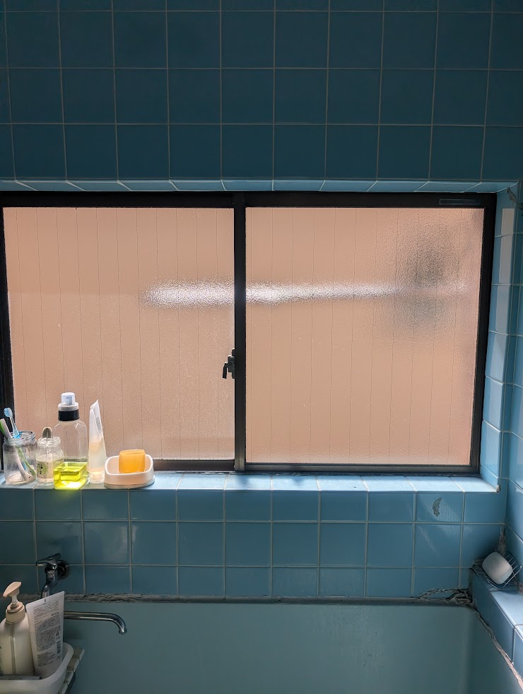 川口市南鳩ヶ谷で浴室引違い窓のガラス交換依頼です