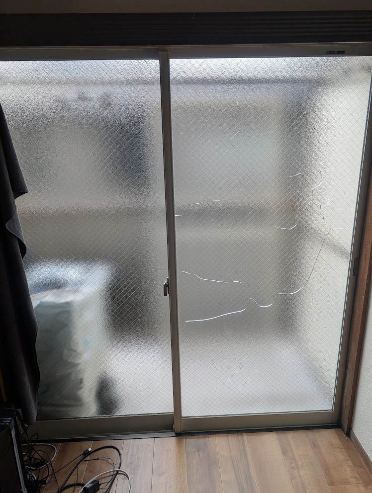 蕨市中央のアパートでガラス交換依頼です