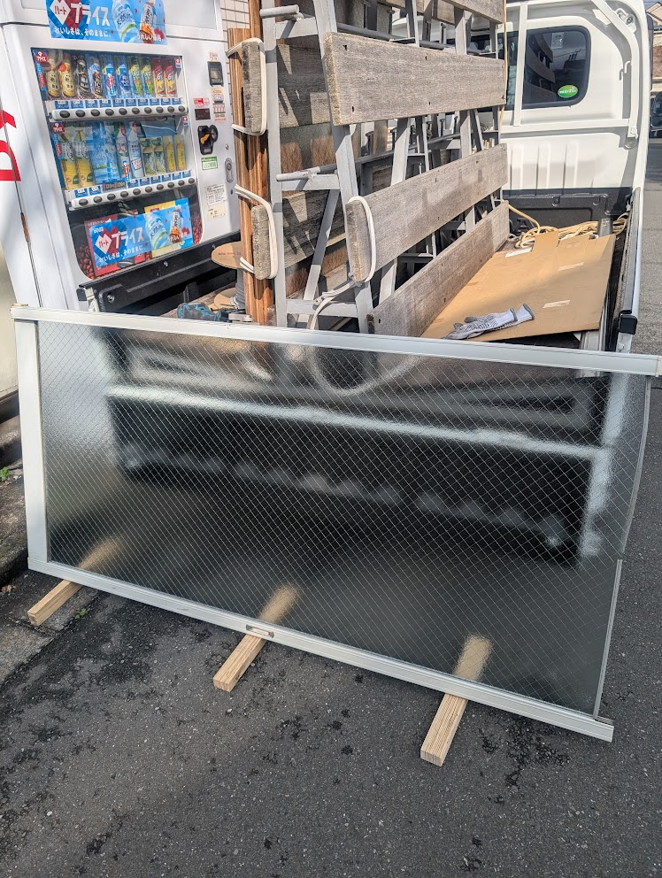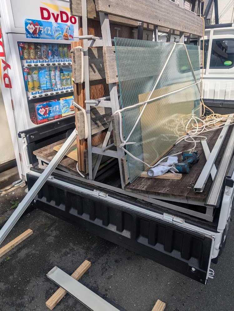 サッシごと1階まで降ろし、軽トラを利用し道路で作業しました💦